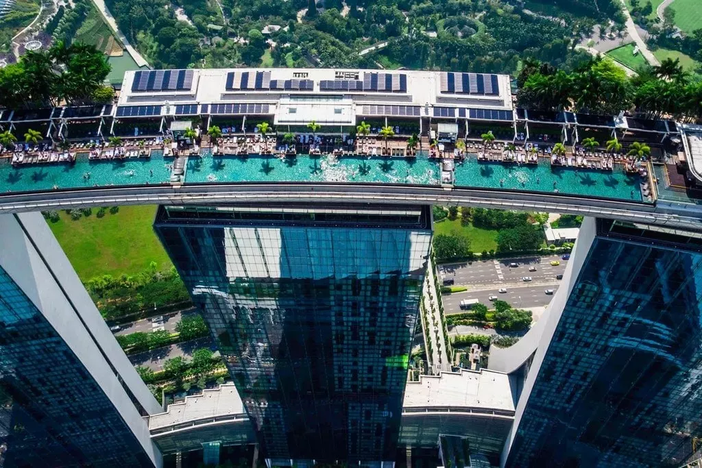 Αυτή η απίστευτη πισίνα, που βρίσκεται στον 57ο όροφο του διάσημου πολυτελούς ξενοδοχείου Marina Bay Sands στη Σιγκαπούρη, είναι αυστηρώς ακατάλληλη για... υψοφοβικούς. Το ξενοδοχείο αποτελείται από τρεις ουρανοξύστες στην κορυφή των οποίων βρίσκεται η περίφημη πισίνα μήκους 150 μέτρων. Θεωρείται μάλιστα η μεγαλύτερη πισίνα υπερχείλισης που βρίσκεται σε τέτοιο ύψος στον κόσμο. Δεν χρειάζεται να πούμε φυσικά ότι η θέα κόβει την ανάσα!