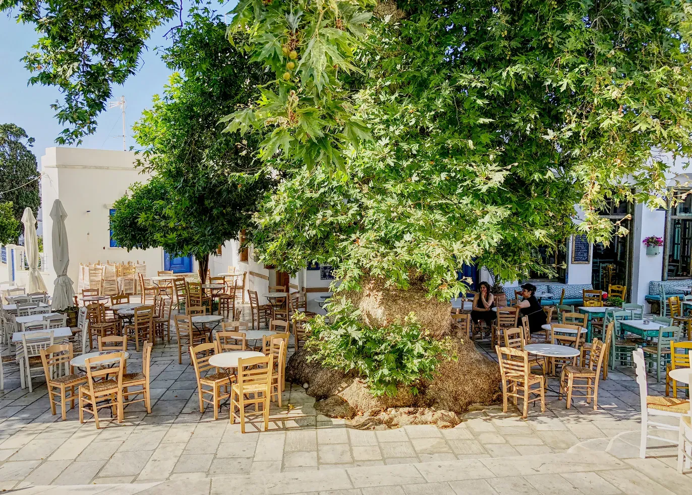 Όλες οι βόλτες στα γραφικά καλντερίμια με την υπέροχη αρχιτεκτονική, καταλήγουν στην κεντρική πλατεία με τον αιωνόβιο πλάτανο που χαρίζει σκιά. Εκεί, στα τραπεζάκια των παραδοσιακών καφενείων η αγαπημένη συνήθεια ντόπιων και επισκεπτών είναι ο ελληνικός καφές και το γαλακτομπούρεκο, με θέα την περαντζάδα.