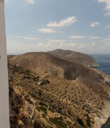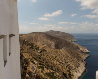 Έχει υπέροχη θέα την Πάρο, την Αντίπαρο και τη Σίφνο προς Βορρά, την Κίμωλο και τη Μήλο δυτικά, και ανατολικά τον επιβλητικό βράχο όπου είναι χτισμένη η μεγαλόπρεπη εκκλησία της Παναγίας, μνημείο πολιτιστικής κληρονομιάς και σήμα κατατεθέν του νησιού.