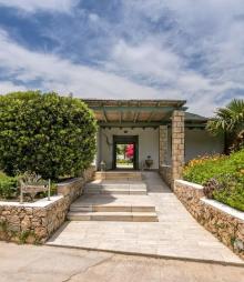 Οι όμορφοι κήποι του μεγάλου κτήματος αγκαλιάζουν το συγκρότημα, το οποίο αποτελείται από τέσσερα αυτόνομα σκυριανά σπίτια με λαογραφικές πινελιές και μπαλκόνια με θέα το πέλαγος.