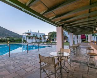 Και επειδή το αεράκι του Αιγαίου ανοίγει την όρεξη, το snack-bar δίπλα στην πισίνα σερβίρει νόστιμα κρύα πιάτα και γεύματα ημέρας με ντόπιες λιχουδιές που προέρχονται από το εύφορο περιβόλι του ξενοδοχείου.