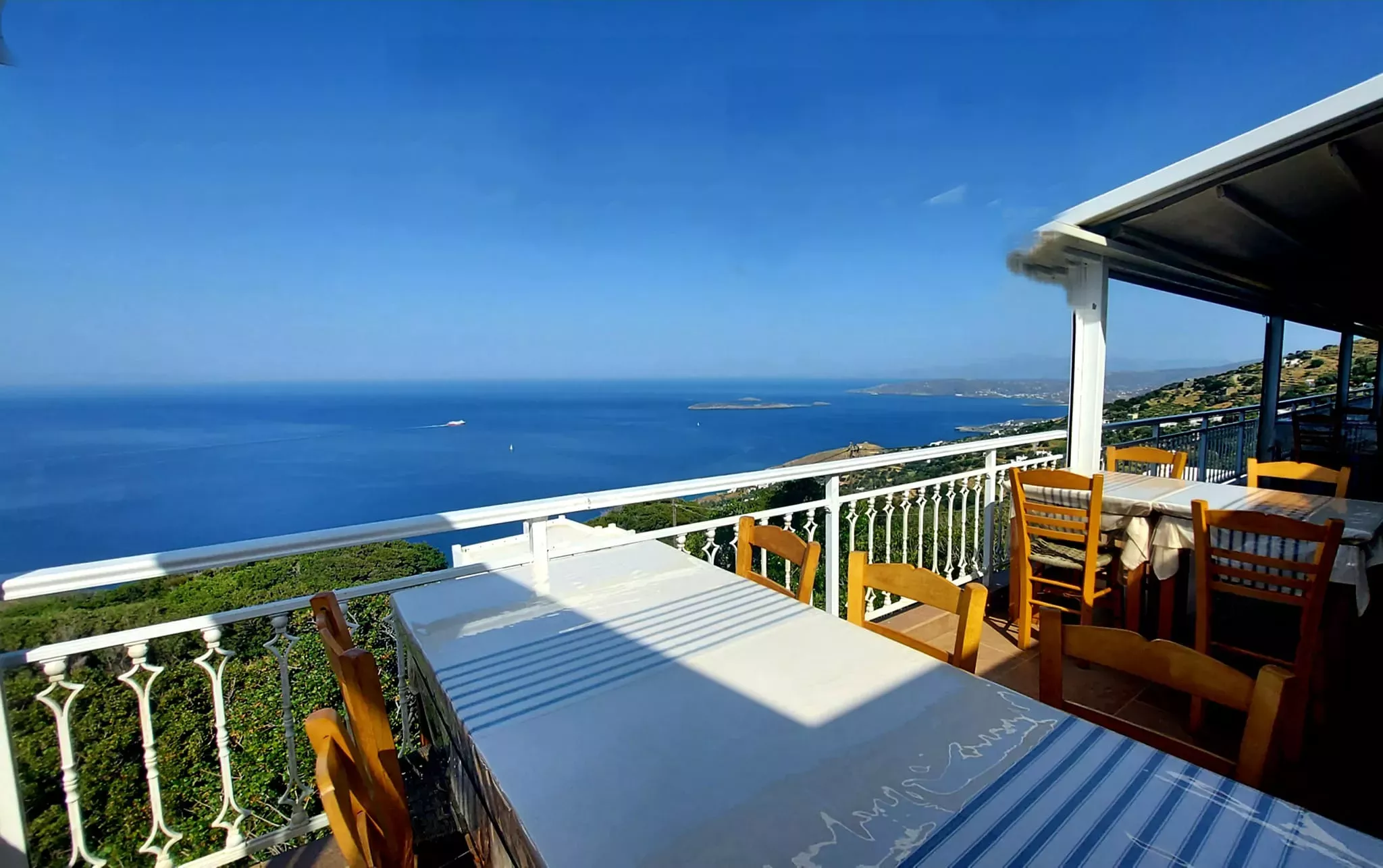 Για νόστιμα, μαμαδίστικα πιάτα με απεριόριστη θέα στο πέλαγος, να πάτε στο Μπαλκόνι του Αιγαίου στο Απρόβατο. Κόκορας κρασάτος με σπιτικά ζυμαρικά, ψητό γουρουνόπουλο, φαγητά της ώρας με φρέσκιες πατάτες - όλα είναι πεντανόστιμα. Μην παραλείψετε να δοκιμάσετε την ανδριώτικη φουρτάλια. Κάντε εγκαίρως την κράτησή σας και ελάτε να απολαύσετε τη θέα στο ηλιοβασίλεμα.