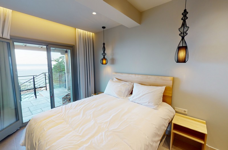 Εδώ θα σας καλωσορίσουν με ένα μπουκάλι κρασί για να απολαύσετε την πανοραμική θέα στο Αιγαίο με απόλυτη ιδιωτικότητα και ασφάλεια.
